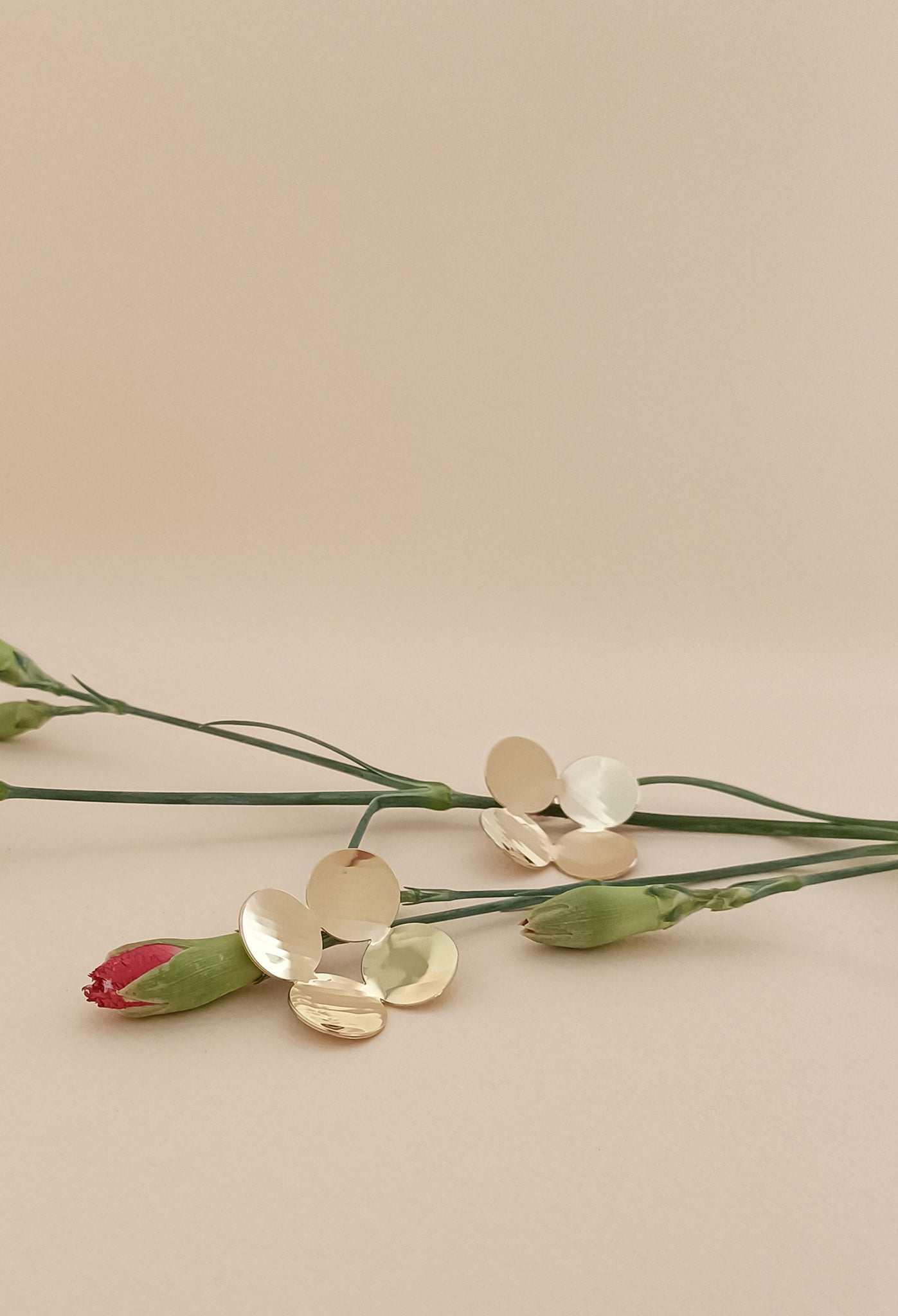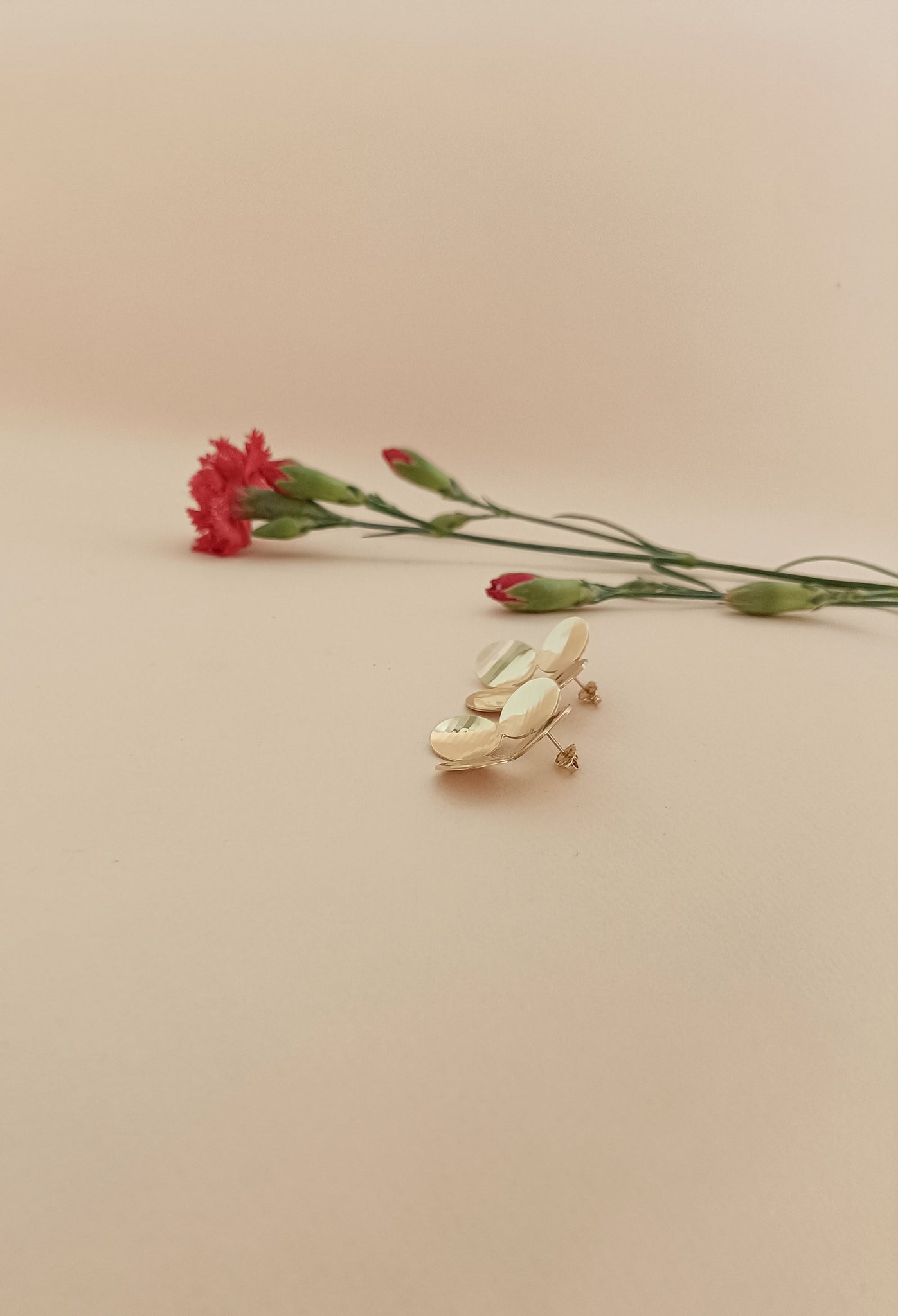 Les boucles Grandes Elli ont un look graphique et seventies, comme on adore ! La créatrice a travaillé cette pièce légèrement concave pour apporter du volume et de l'originalité.