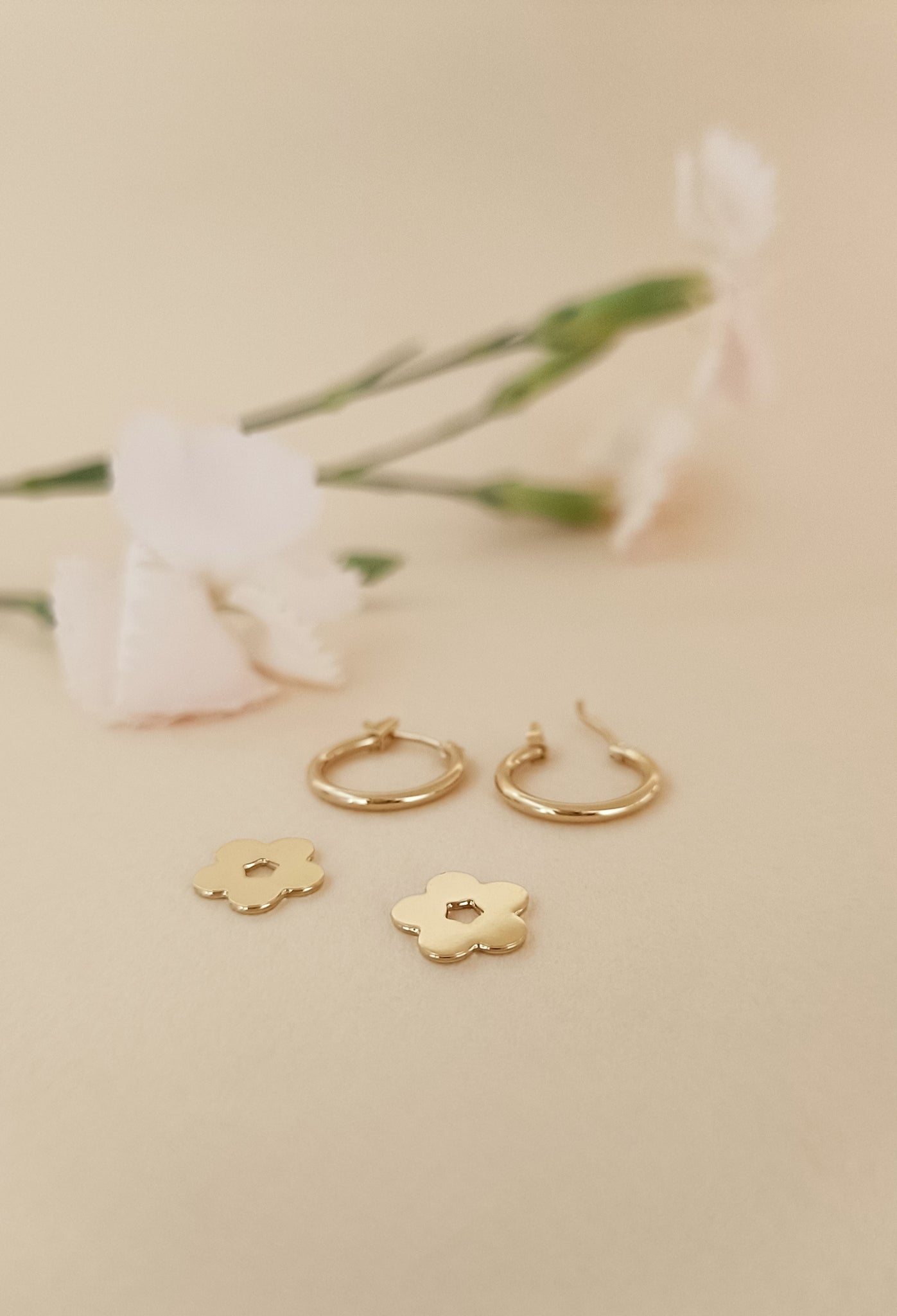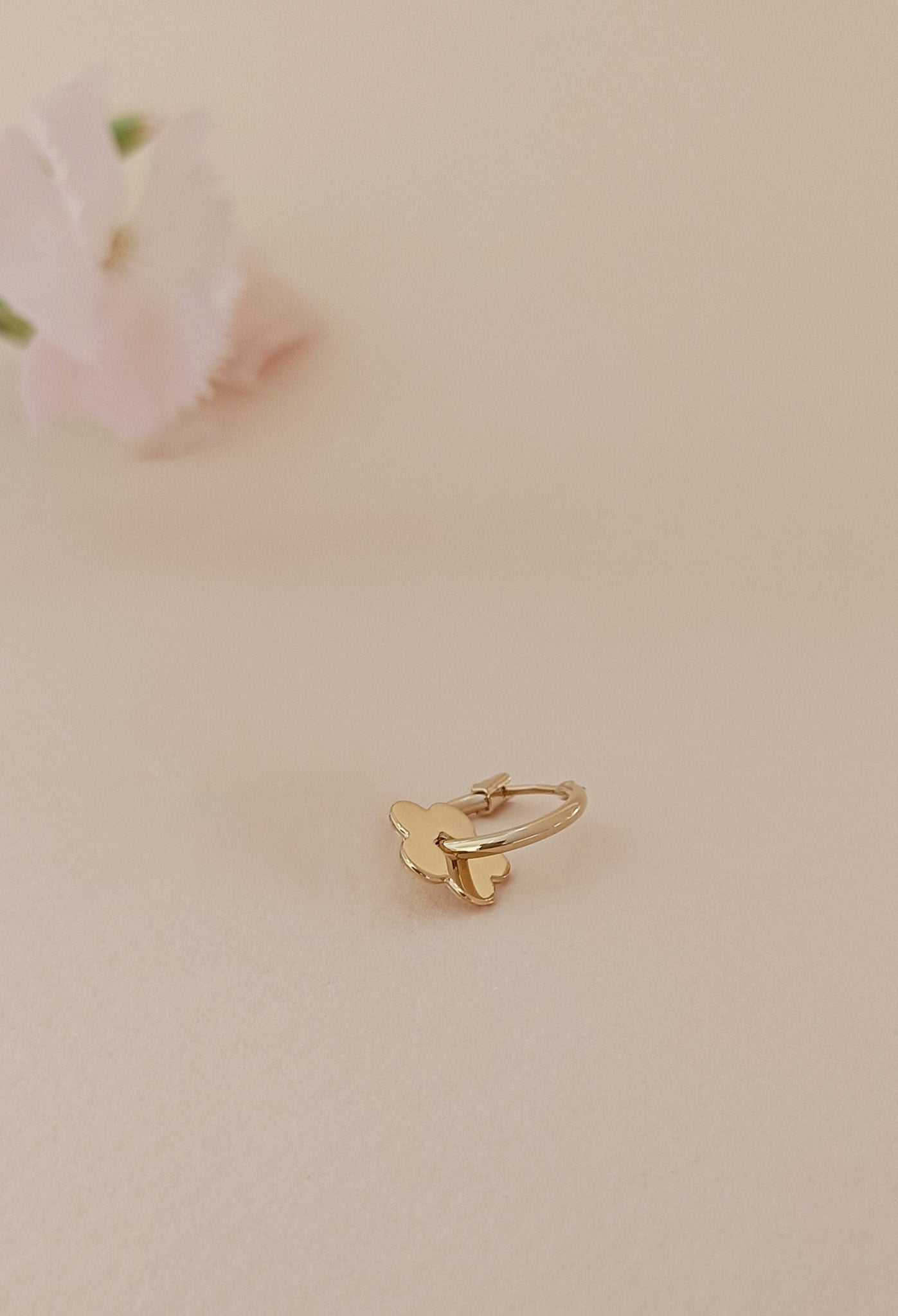 La mono Créole Rose est une fine créole composée d'une fleur, symbole de la marque.